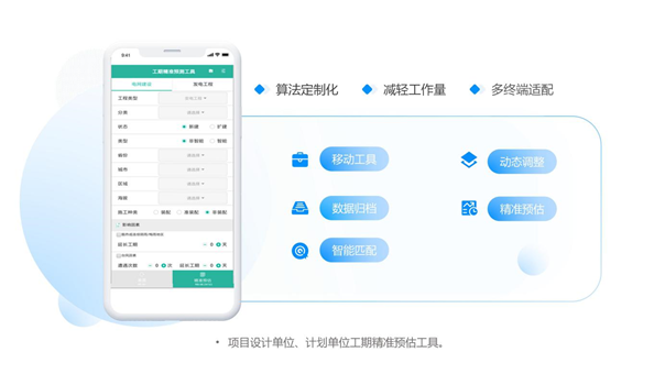 • 算法定制化:根据行业标准、工程类型及海拔、气候等外部因素,多场景定制工期算法;