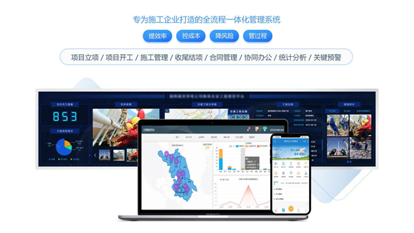 工程全生命周期纵向管理,提高施工质量:基于项目立项、项目开工、过程管控、收尾结项,实现从立项到结项的全生命周期纵向管理,过程管控从进度、安全、质量、人员等7个维度进行精细化管控,能有效降低工程风险,提高工程施工质量;