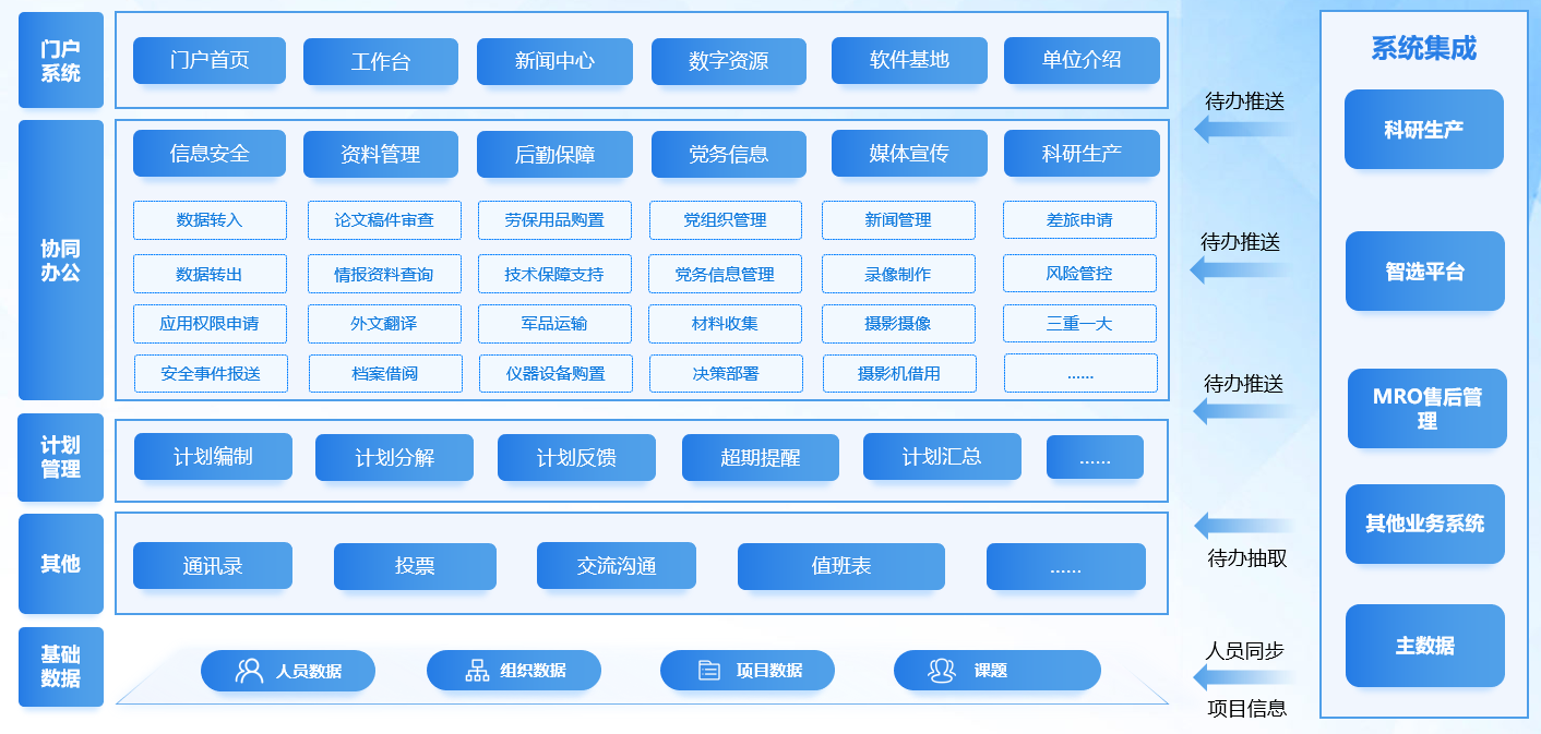 功能模块,丰富全面:覆盖数据转入转出、论文审查、仪器购置等50 +办公审批流程以及管理类计划、差旅报销等独立系统。