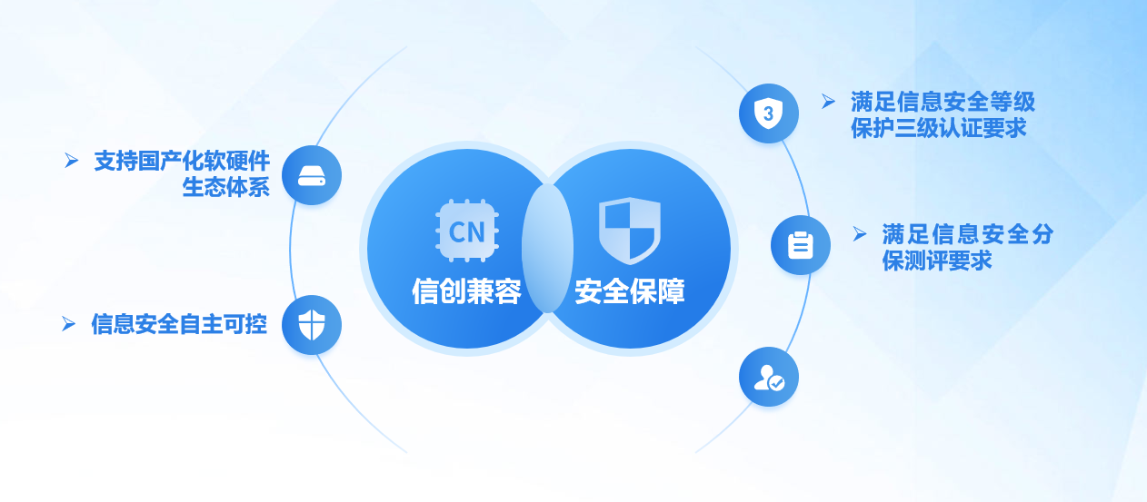 国产化深度适配:全面适配主流国产服务器、操作系统、数据库和中间件。