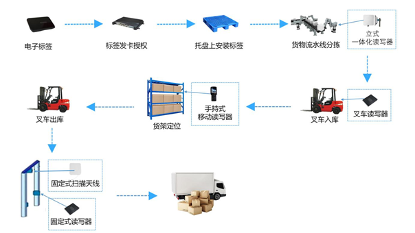 • 联网技术支撑:基于RFID的技术,结合移动手持终端,实现仓库的快速出入库、盘点,提高仓库的周转率;