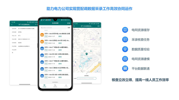 营配采录核查是一款旨在提高营配数据现场核查效率、提升采录质量、实现电网资源及时更新的微应用。该微应用以营销业务系统与电网GIS星空web版登录入口为基础支撑,以移动作业终端和手机为载体设计并开发营配采录核查功能,能够实现核查任务下发-现场数据核查-数据质量检验-成果数据入库的作业全流程闭环管控,达到采录作业标准化、数据成果规范化的目的,从管理手段上有效保障数据与现场的一致性,通过营销业务应用系统、GIS系统、PMS系统、数据结构化星空web版登录入口等多系统互联,实现营配数据现场核查立改立得,提高一线工作人员的获得感,确保电网资源及时更新、实时有效。