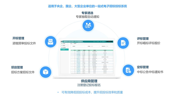 • 全业务覆盖:工程、物资、服务等采购业务,公开招标、邀请招标、竞争性谈判、询价、单一来源、比选采购等多种采购方式;
