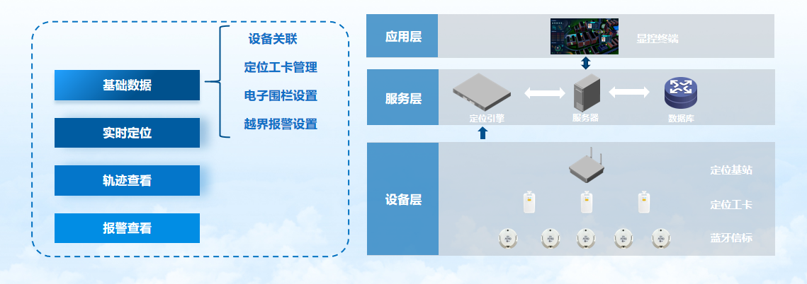 人员自动定位系统在生产区域内通过人员定位卡、定位信标、定位基站等基础设施对厂区内部人员位置进行实时跟踪,显控终端对位置数据进行分析和处理,可对厂区人员位置进行实时跟踪与异常报警管理。
