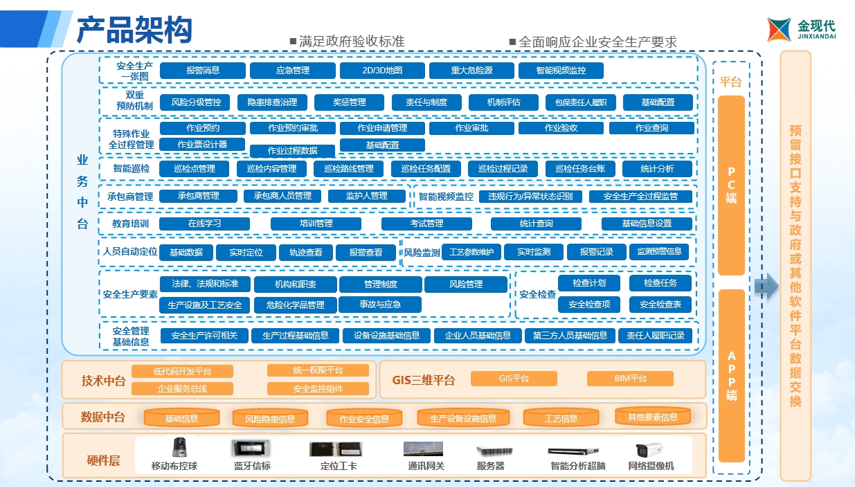 安全生产管控星空web版登录入口建设内容包括安全生产一张图、双重预防机制管理、 特殊作业全过程管理、人员自动定位、智能视频监控、智能巡检、教育培训等模块,可实现从“传统安全管理方式”向“现代化安全管理方式”的转变,帮助企业更好的规范安全管理。