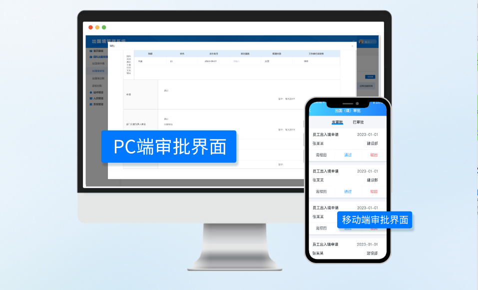 系统支持移动端和PC端两种方式,办公不受时间、地点的限制,领导可随时随地审批。