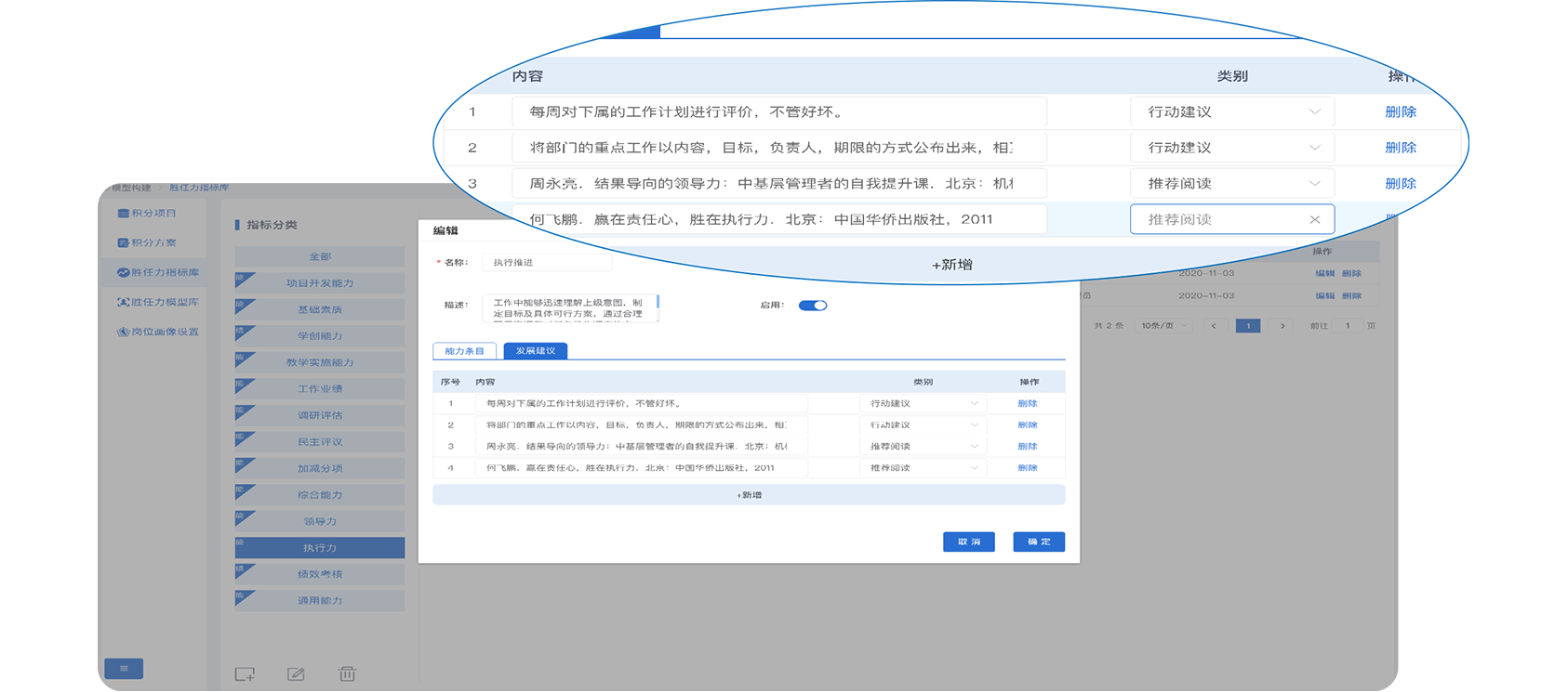 1.数字建模。基于员工能力特点、岗位画像要求,构建岗位胜任力模型,辅助人才画像、人才诊断、人才发展跟踪。