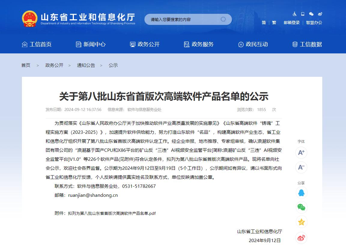近日,山东省工业和信息化厅公布第八批山东省首版次高端软件产品名单,星空online(中国)基于物联网、大数据的实验室数字管理星空web版登录入口和安全生产智能管控星空web版登录入口两款软件入选,产品技术先进性和市场竞争力备受认可。