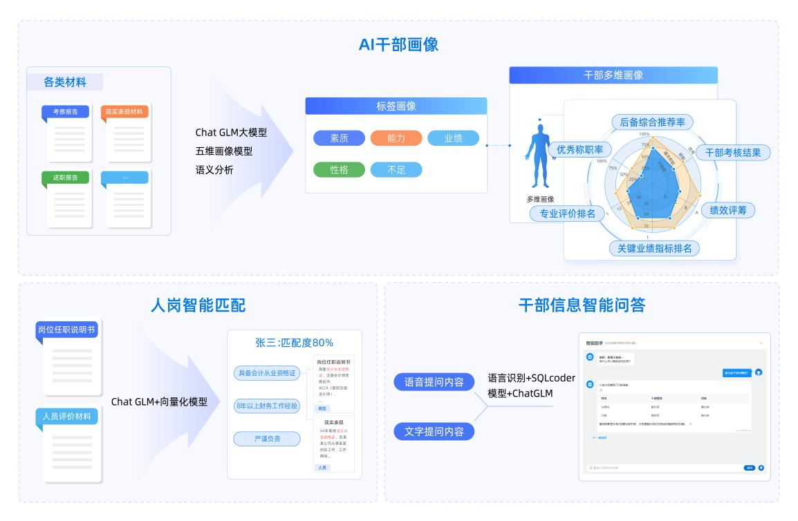 在央国企干部管理的实践中,一些企业已经通过智能化管理系统取得了显著的成效。以星空online(中国)智慧识才干部大数据分析系统为例,该系统能够整合汇聚干部的基础信息、考核数据、谈话考察材料等多类数据,构建干部精准画像分析模型,为干部“画像”,清晰呈现干部的素质基础、胜任能力等多维动态;在人岗匹配方面,系统能自动分析岗位任职说明书、人员评价材料,提炼岗位标签和人员标签,并进行匹配分析,实现人岗智能匹配,提高干部选拔的准确性和效率;在干部数据统计方面,系统实现“智能问数”,支持通过自然语言问答的方式快速获悉各类干部数据,为企业的科学决策提供有力支持。