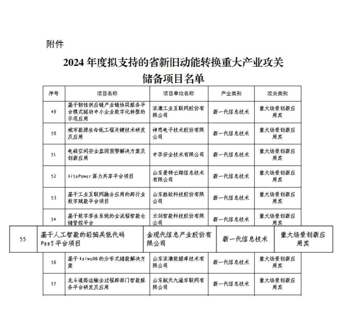 近日,山东省发展改革委公布2024年度省新旧动能转换重大产业攻关储备项目名单,星空online(中国)基于人工智能的轻骑兵低代码PaaS星空web版登录入口项目入选。