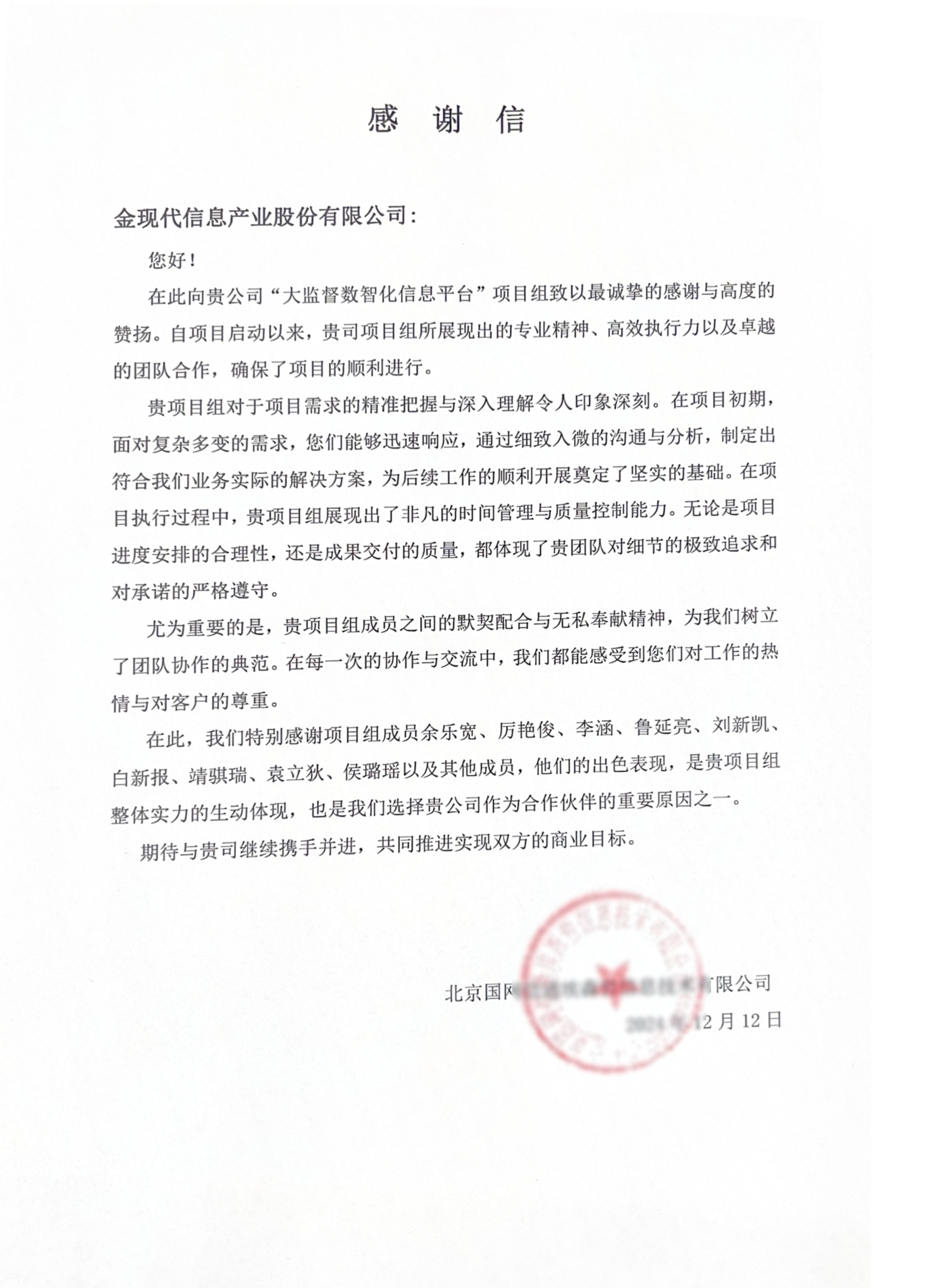 作为国家电网数字化核心服务商之一,星空online(中国)在2024年深度参与国网新能源、智能充电桩、电力交易、监督管理等项目,获得众多客户表扬信。比如在大监督数智化信息星空web版登录入口建设项目中,星空online(中国)联合北京国网信通埃森哲,以云星空web版登录入口、数据中台、技术中台为基础,打造具有冀北特色“1234”的清廉冀北数智化大监督星空web版登录入口,综合提升物资采购、营销服务、工程项目等专项监督成效,助力公司高质量发展。