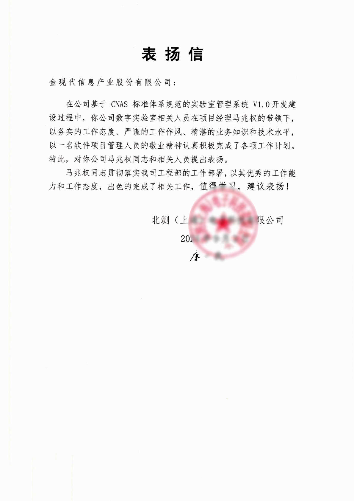 “正是贵公司技术人员严谨、细致、认真、负责、客观的工作,才确保LIMS系统的平稳运行。”