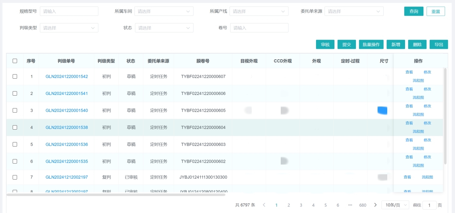 实验室需在膜卷完成检测后汇总结果、判定等级,并基于母卷的结果对子卷判级。原流程依赖人工汇总检测数据并手动判级。星空online(中国)LIMS可自动汇总检测结果,按预设规则自动生成判级单。系统还能同步标记不合格项,确保问题一目了然。检测结果和判级信息会实时传递至MES系统,免除了人工梳理和判级的过程,实现了检测流程的自动化管理,提升了工作效率和数据准确性。