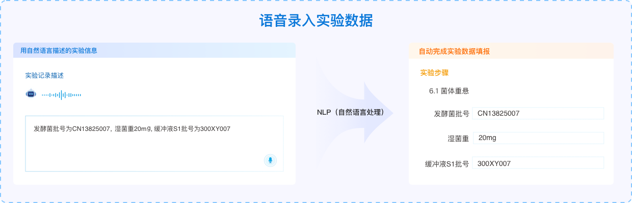 语音智能记录:系统通过语音识别与语义分析技术,自动将实验数据精准填入对应字段,支持大段落自然语言录入。实验数据录入效率提升80%,错误率趋近于零。
