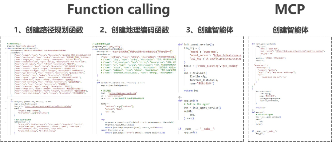 Qwen2.5-Max调用百度地图插件时有无 MCP的代码量对比