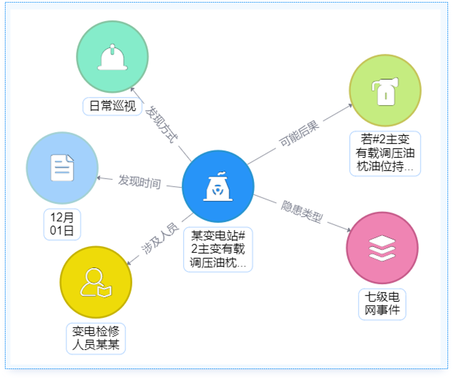 知识图谱是以图结构存储知识的技术,由实体节点、关系边及属性构成,以三元组形式组织。以某变电站安全隐患报告为例: