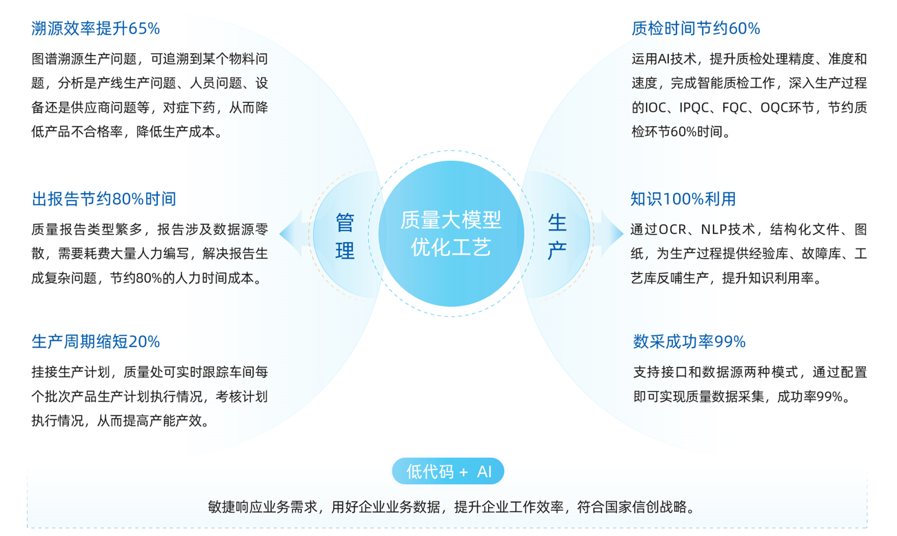 星空online(中国)质量数据管理星空web版登录入口引入“双五归零”质量管理方法,通过知识图谱、OCR、NLP等前沿技术,建立质量主数据的图数据链路,具备质量问题溯源、根因分析等能力,帮助企业高效完成生产、试验、检验各环节质量问题的高效管控,同时结合质量知识库,智能、快速生成质量相关报告,实现质量问题归零、优化工艺、降低成本的目的。
