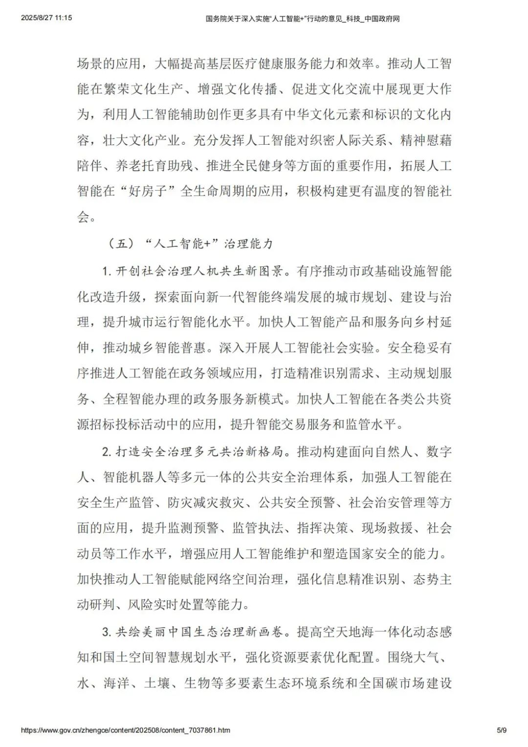 定了!国务院《关于深入实施“人工智能+”行动的意见》明确3个目标、 6大行动、8项支撑
