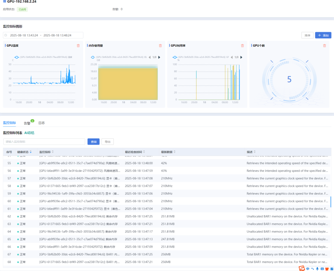 GPU服务器的运行状态直接决定着AI应用的可用性与性能表现,星空web版登录入口能够实时监测GPU的核心指标,包括GPU温度、利用率及进程占用情况等关键数据,为硬件资源的稳定运行筑起“防护屏障”。