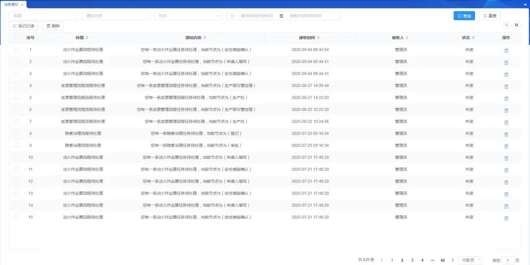 因此,系统要确保相关人员可实时查看任务进展,无需反复询问进度。作业状态变更、审批通过、隐患整改完成等关键节点自动推送通知,减少“等通知、跑沟通”。